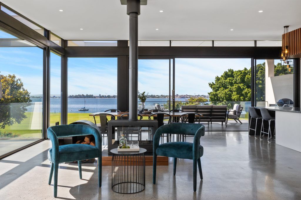 The phenomenal attention to detail is equally as impressive, from the internal staircase crafted from one piece of concrete to the jarrah wall panelling created from reclaimed timber from the old Bunbury Jetty.